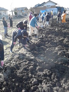 今日は三本塚地区の畑で表面に落ちているガレキ拾い、土起こしの作業を行いました。