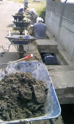 側溝の泥だしと、畑の土起こし&がれき拾いを行いました。