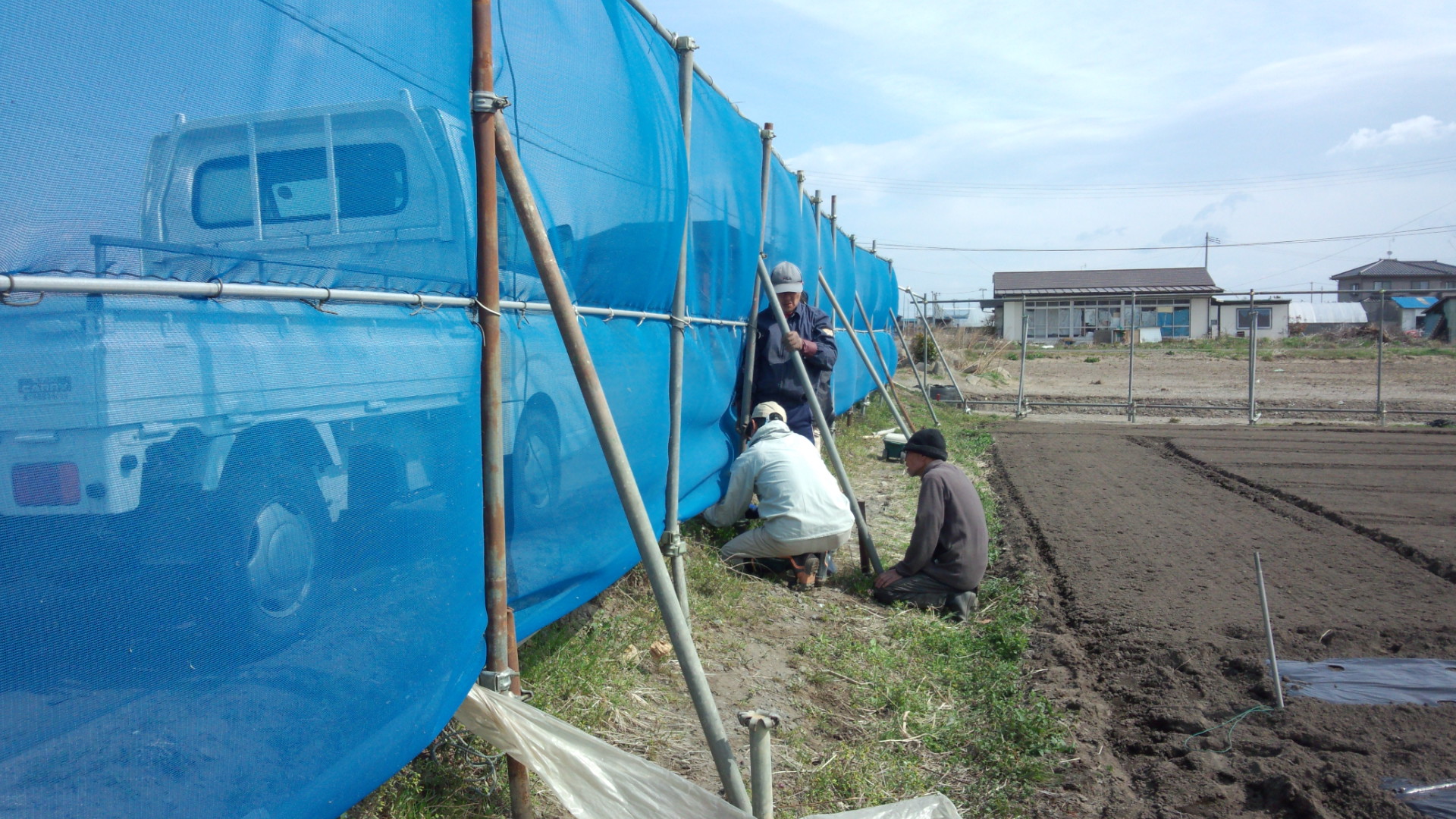こちら、一昨日の暴風で防風ネットが壊れてしまったので、