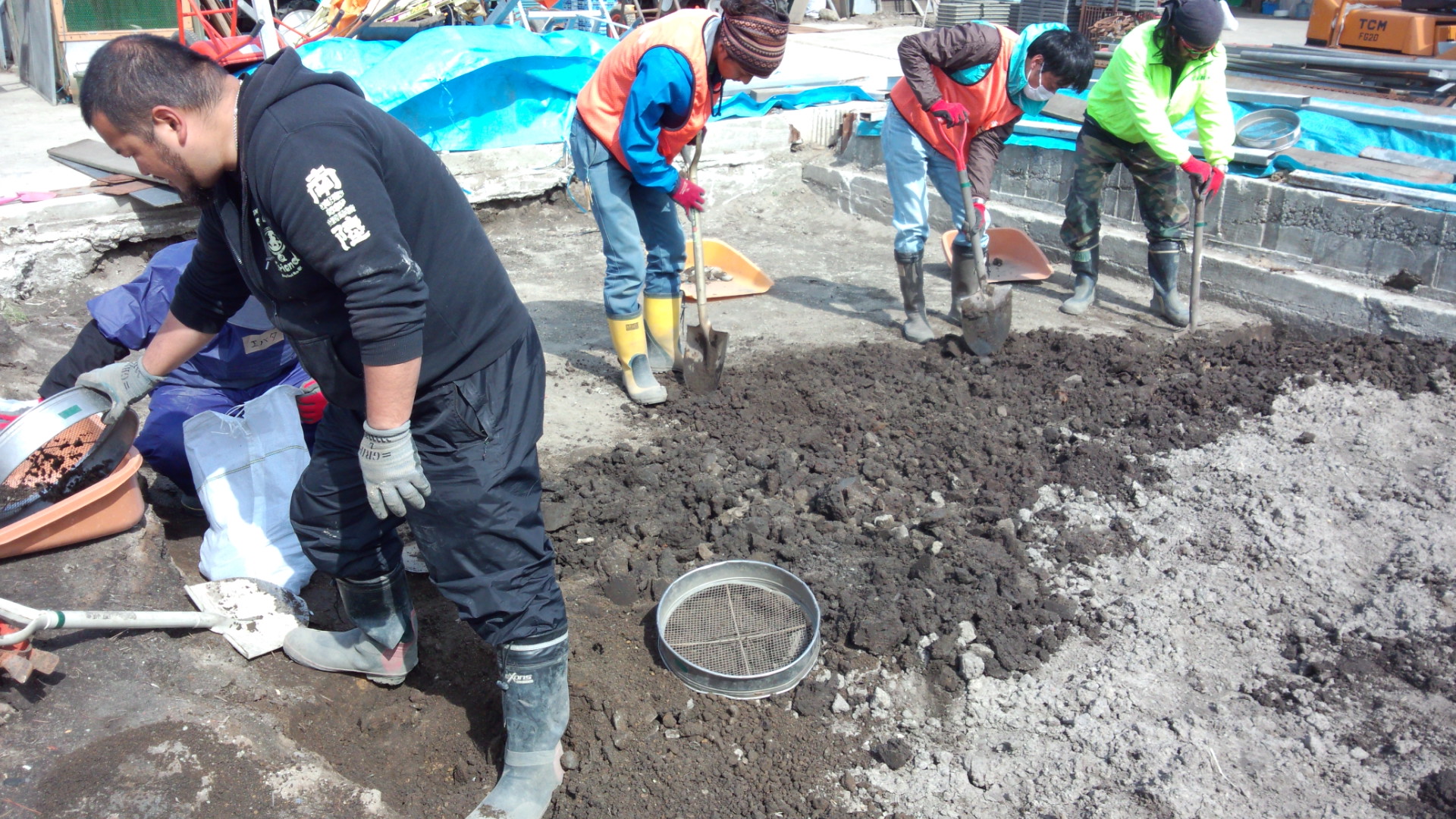 ①畑の土おこしとガレキひろい
