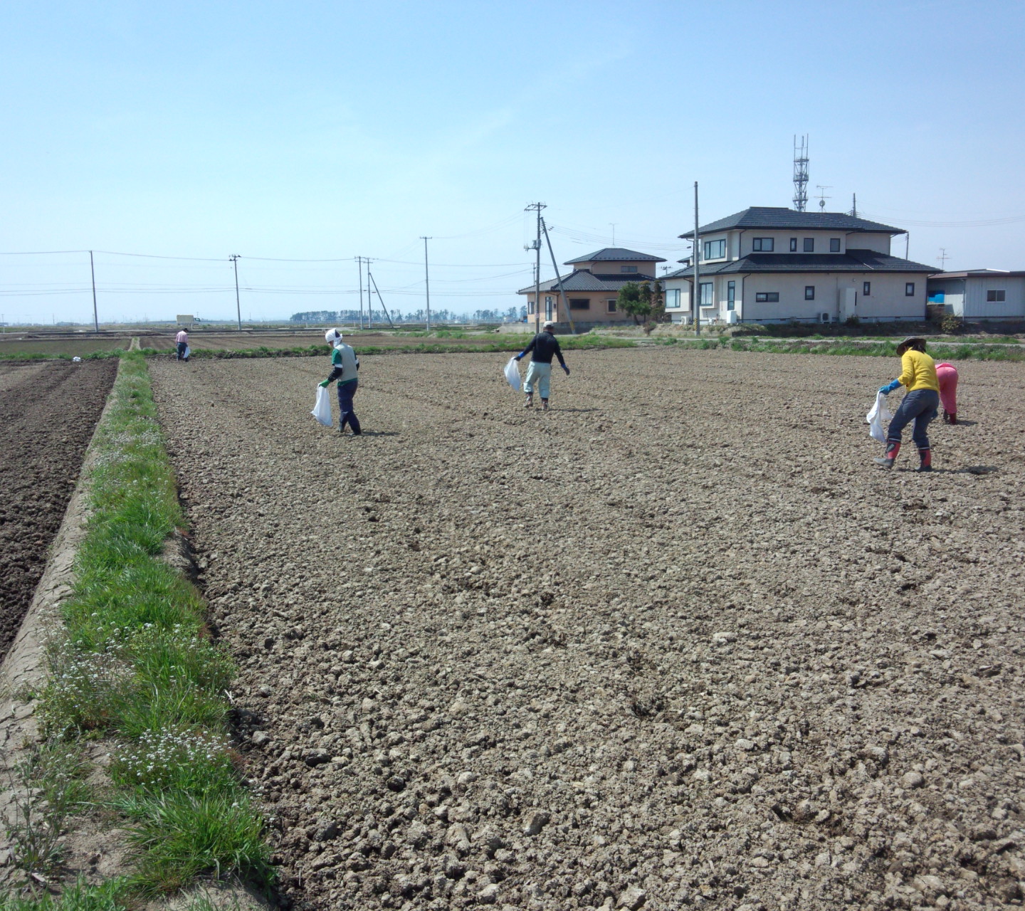この畑はとても広く、さらに、石が細かいものから大きなものまで多い畑です。