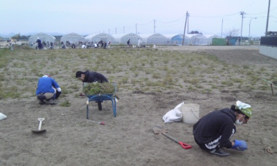 今日は三本塚の畑で表面のがれき拾いと雑草取りの作業をしました。 題名にもある通り、今日は表面のがれき拾いと草取りだけで見違えるような畑になりました。 before after 写真を見たら一目瞭然ですね!このあと土おこしの作業も必要になりますが、とてもやり易くなりそうです。 そして、雑草だと思って引っこ抜いたらそれは意外にもじゃがいもさん。しかも大量。 「じゃがいもパーティーだー」等と関西の女子大生たちと話したり、小学生のお子さんがジャガイモを見つけて喜んでいたりと活気を与えてくれました。 また、今日は突然だったのですが、堆肥をまく作業など一日かかるとおもわれた作業を、テキパキとやっていただいたおかげで3つほど終わらせて頂けました。お疲れ様でした。 今日も初めて参加してくださった方、遠方から来てくださった方、何度も足を運んでくださる方、本当にありがとうございました。個人でもご家族でも、どなたでも歓迎しているので、ぜひまた足を運んで下さい^^