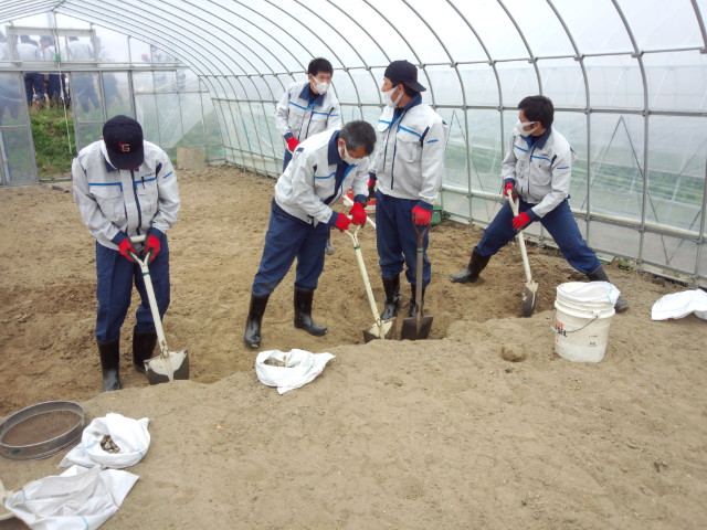 ↓あと、同時並行だったビニールハウス内のガレキ取りの様子です。こちらも丁寧な作業でした!