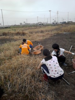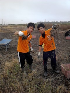 活動内容は雑草を抜くことです。農家の方が事前に除草剤をまいておいてくださったのでいくらか抜きやすくなっていましたが、とても量が多かったです。