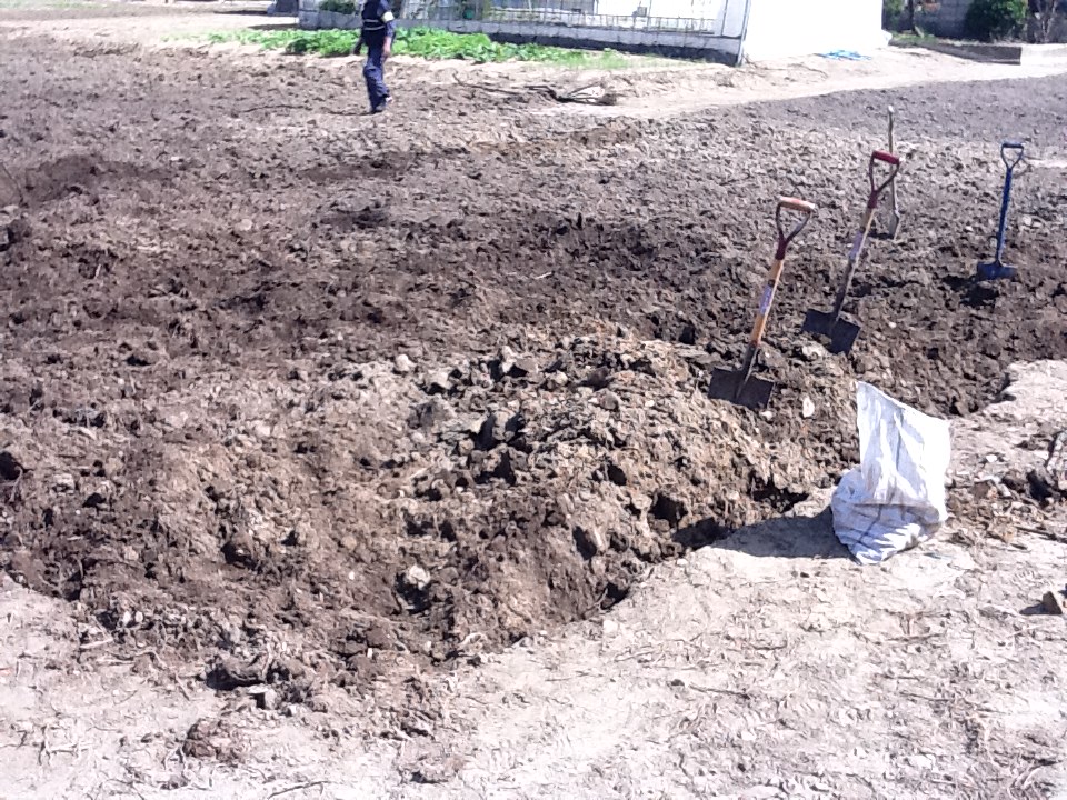 みんなで力をあわせて畑の土興しは完了