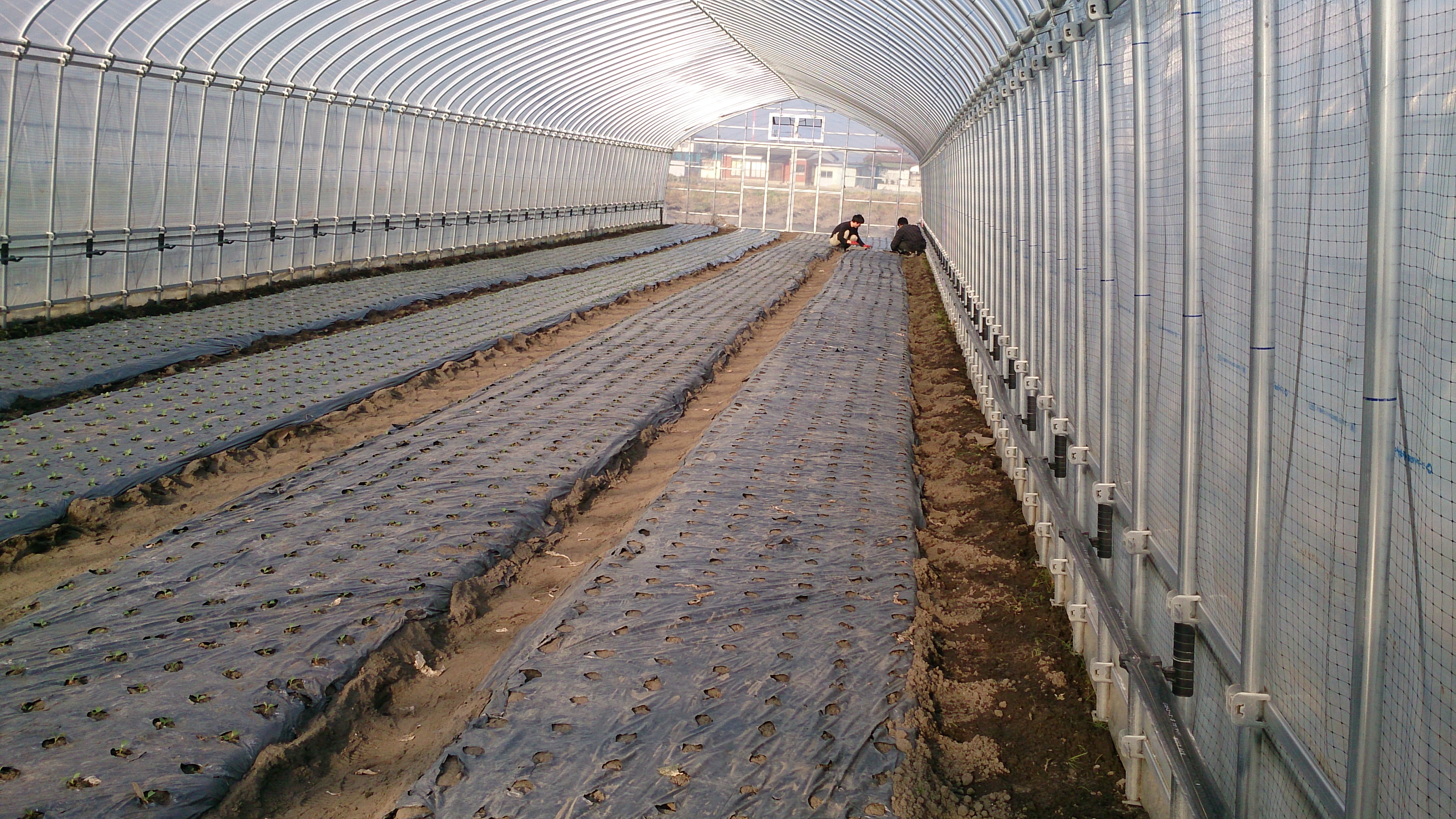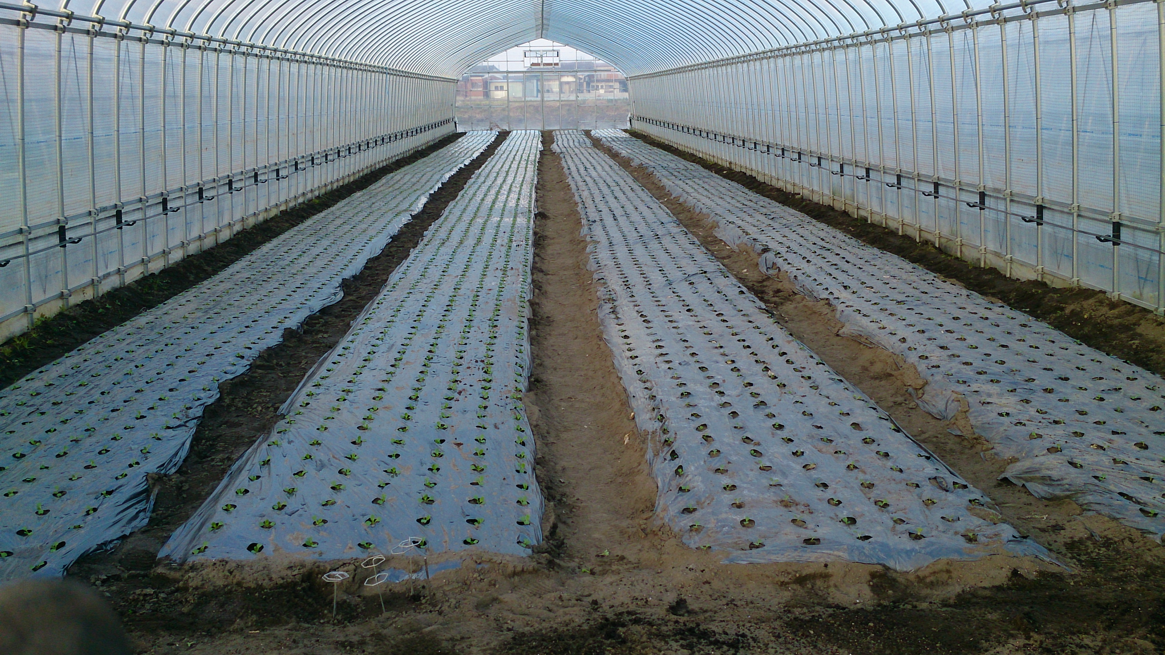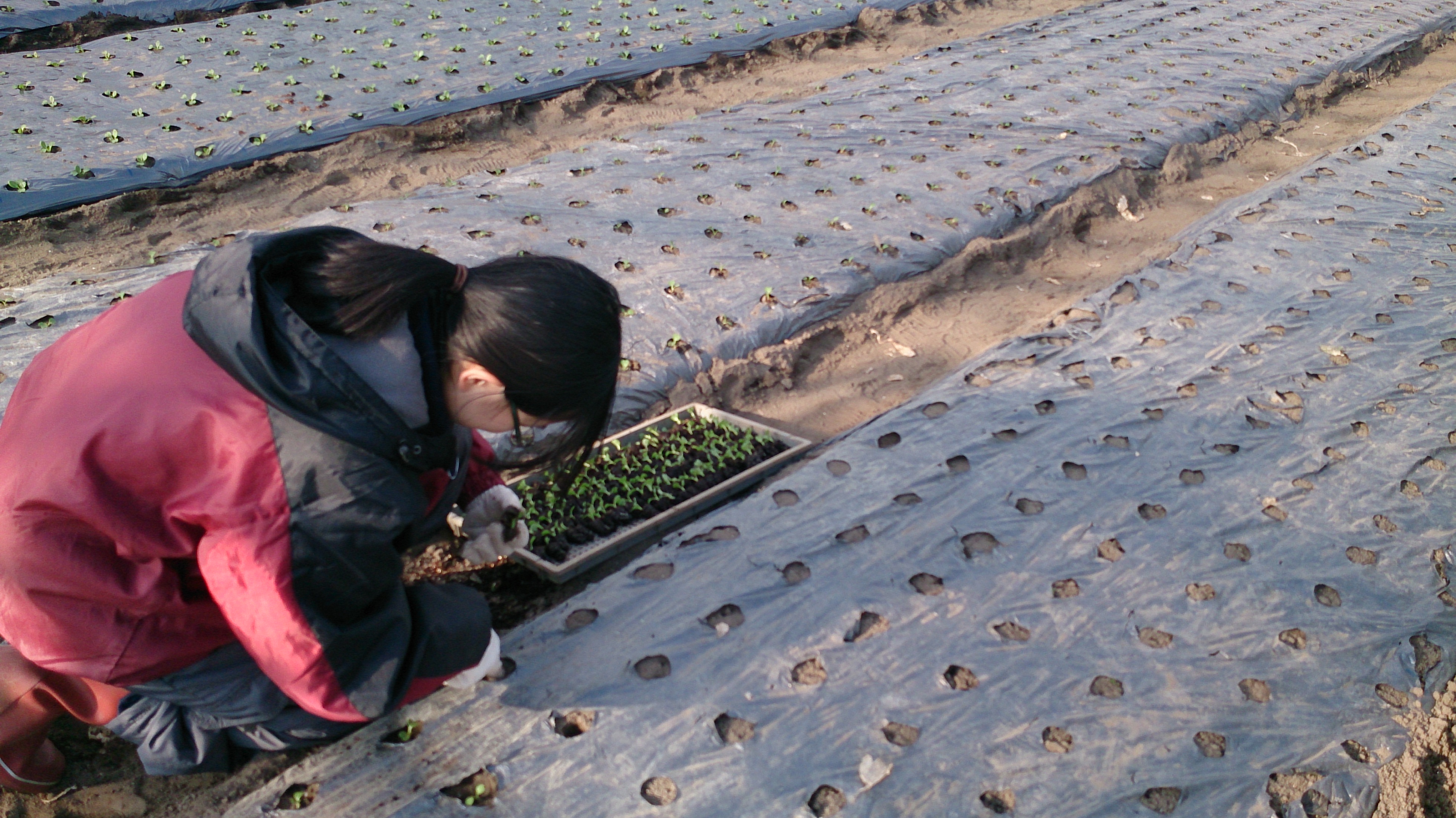 この日は、午前3人、午後4人で、ボランティアハウスの隣にあるビニルハウスでチンゲン菜の定植をしました。