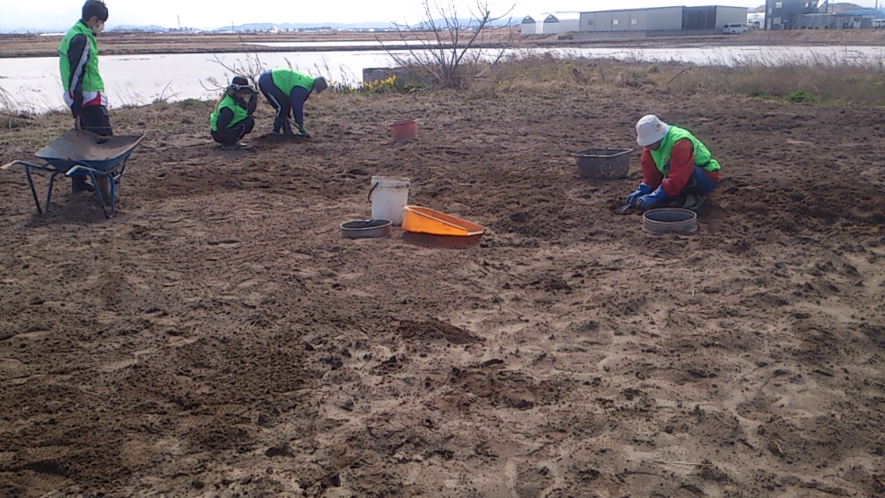 ここの畑は前にも何度もガレキ撤去をやって、ひまわりを植えて夏にはひまわりまつりの会場にもなっていたのですが、やはり半年経って再びガレキが浮いてきてしまい、またガレキ撤去をすることとなりました。