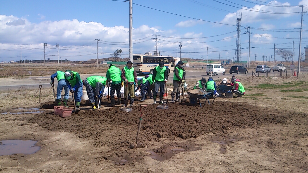 今日は、藤岡災害ボランティアさんといっしょに荒浜の畑でガレキ撤去を行いました。