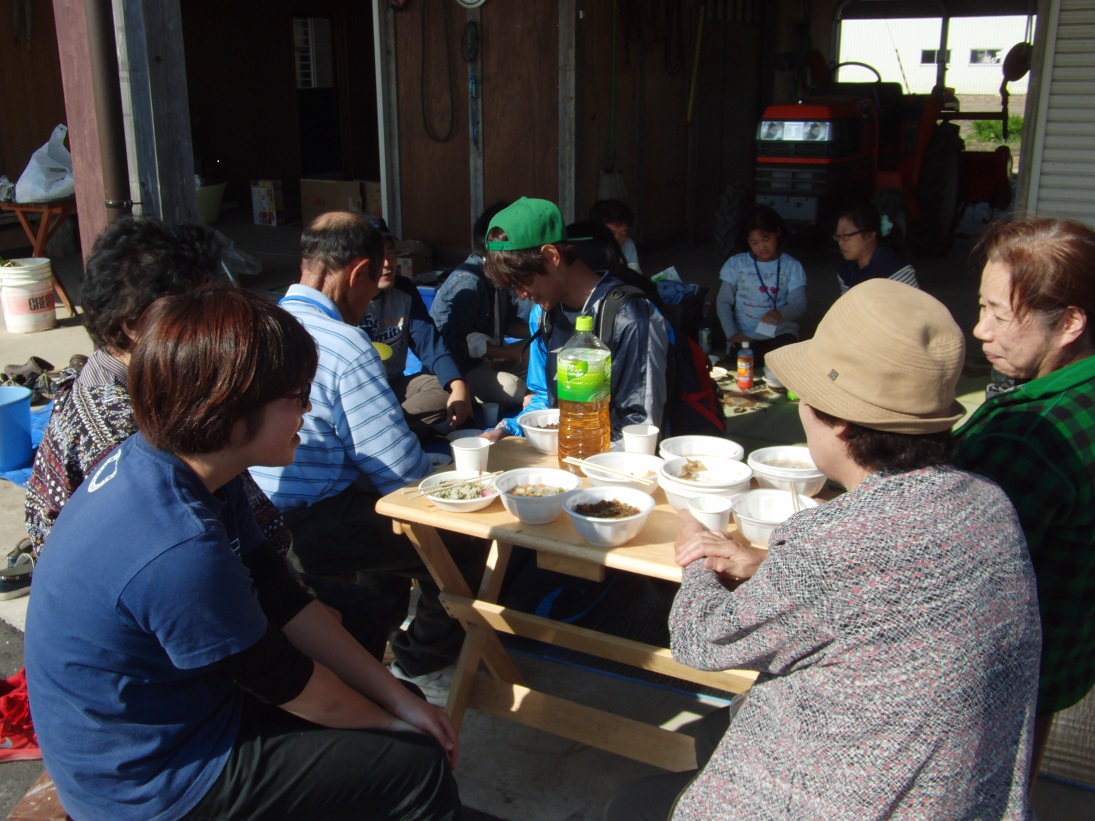 芋煮を食べながら、近所の方から震災の前の地区の暮らしや、震災当時の話などもお聞きしました。やはり、震災後土質が変わってしまい皆さん苦労されているようです。