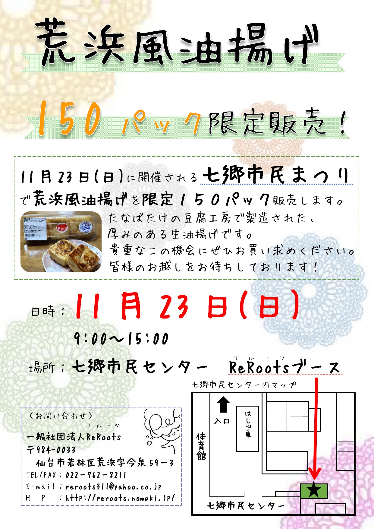ReRootsは、東日本大震災による津波被災地の復旧から復興、更には地域おこしにむけて、仙台市若林区のボランティアハウスを拠点に活動する団体です。