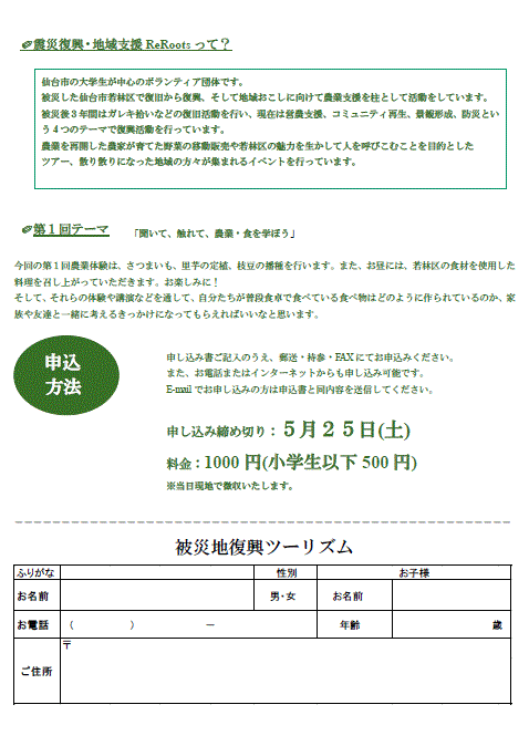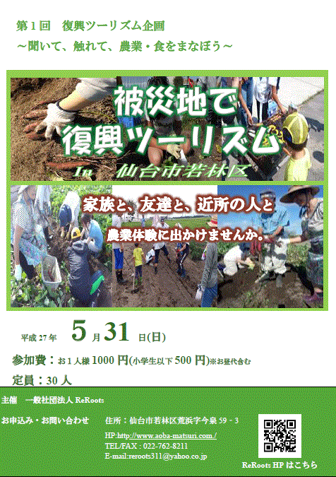 開催日時:5月31日(日) 午前9時 ReRoots若林ボランティアハウス集合