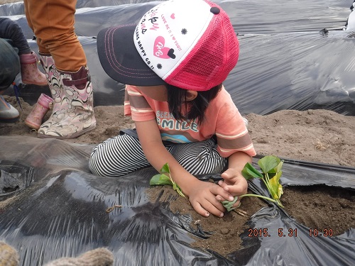 親子で一緒に苗を植え、土と自然に触れ合います