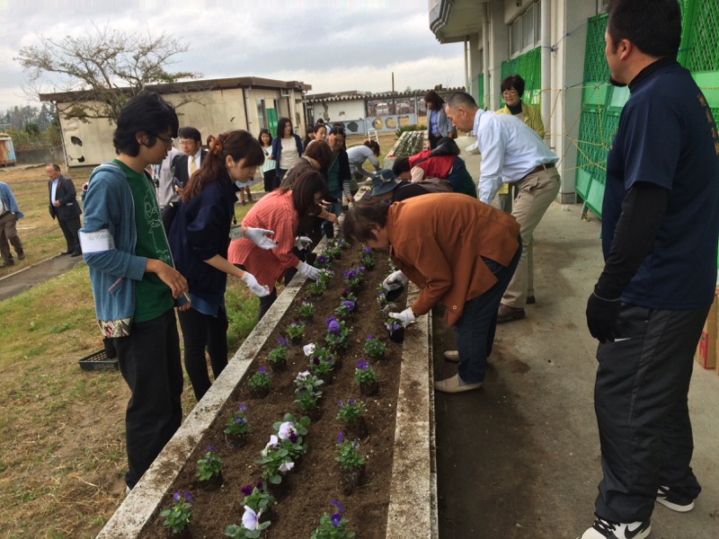 今回のイベントは、その体育館への寄せ書きと校舎前の花壇の花植えをする、というもので、ReRootsは花壇の花植えの運営を担当させていただきました。