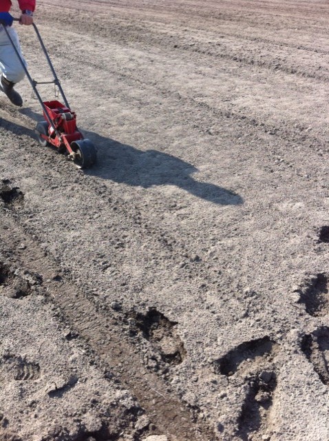 前回小松菜と雪菜の種を播いたときに活躍した「種まきごんべえ」は今日も活躍しました!