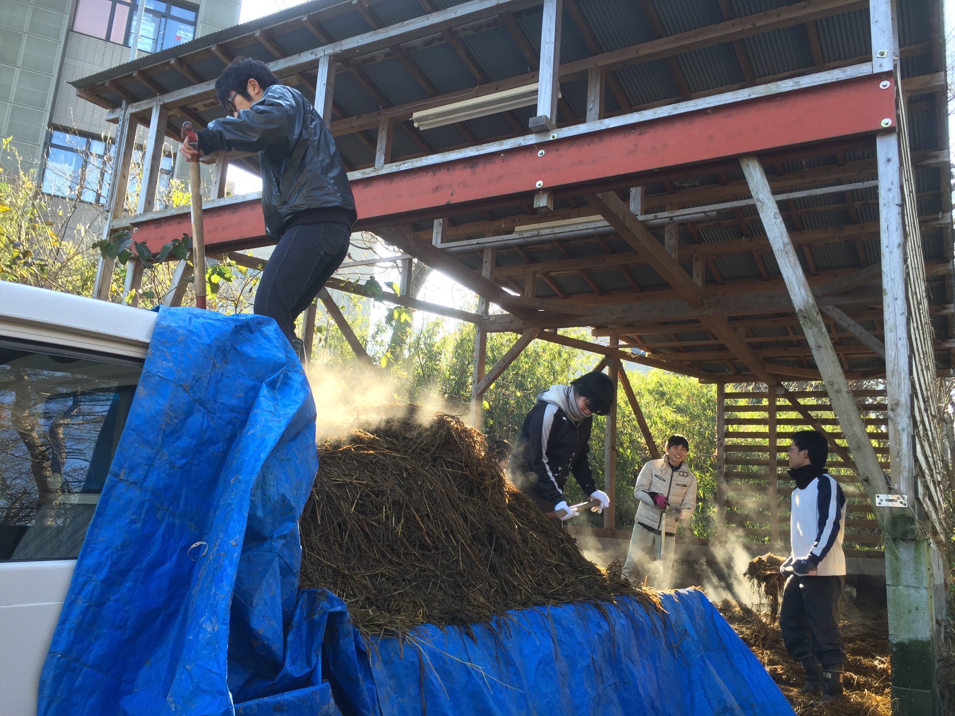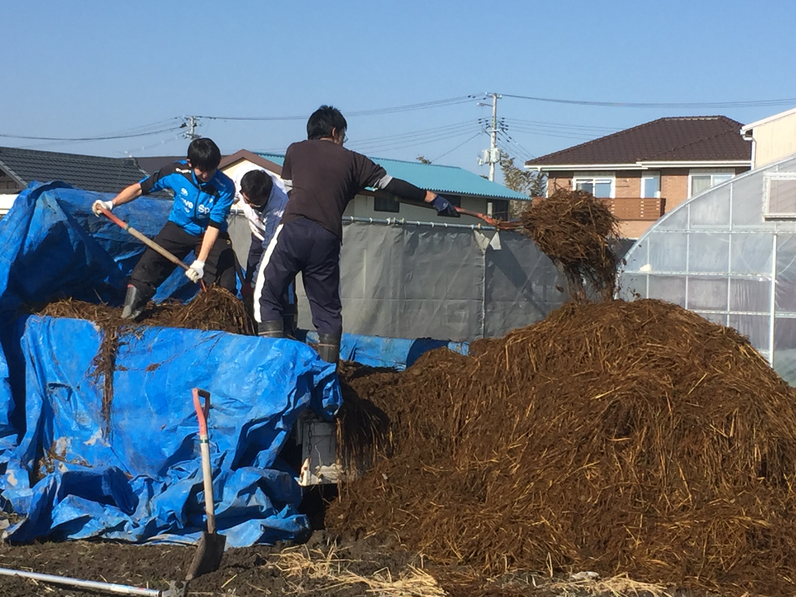 今回、私は初めて馬糞運びの作業を行いましたが、トラックへの積み込み・積み下ろし作業が想像以上に力が必要で、こんな大変の思いをしてまで土を良くするために馬糞を運び、畑に入れる農家さんの並々ならぬ土へのこだわりを身をもって実感しました。