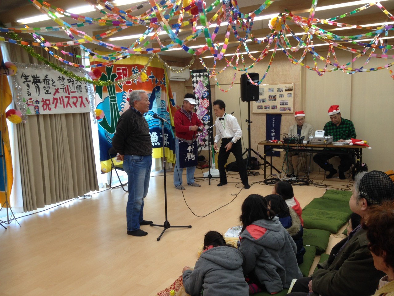 歌や踊り、音楽や楽しいトークで場を盛り上げ、ダンスではサンタも一緒に踊りました♪