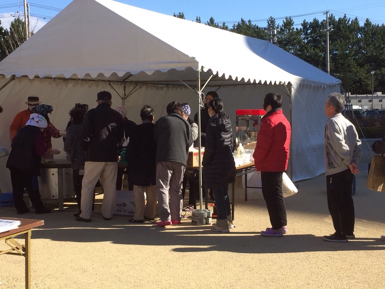 午前中、外では町内会の主婦さんたちお手製の豚汁や、おにぎり、ポップコーンなどが振る舞われ、食事を通して、みなさん和気あいあいとした雰囲気のお昼でした。