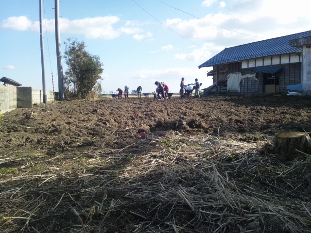 今日の活動は、昨日の畑の続きで、土おこしとガレキ拾いです。