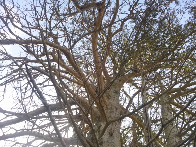 家の裏には樹齢300年にもなるカヤの木があります。