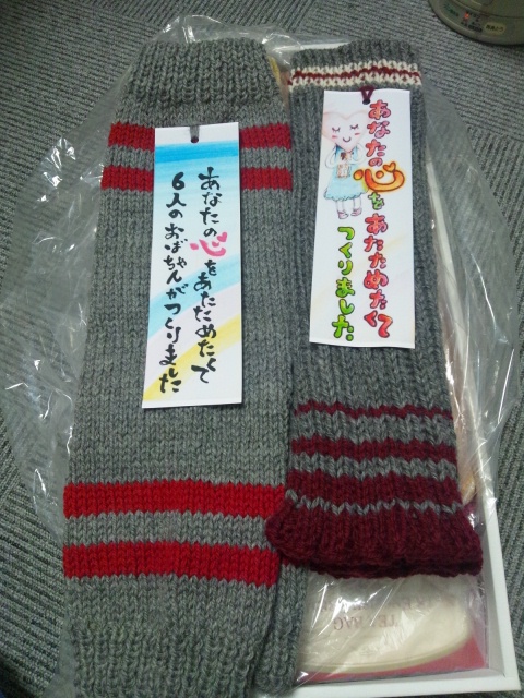 写真にもある通り、6人のおばあちゃんたちが、気持ちを込めて編んでくれたものです。