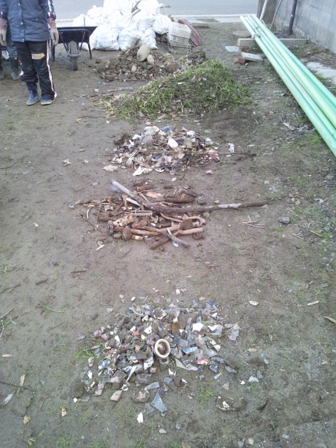 取り出したガレキは、種類ごとに分別します。