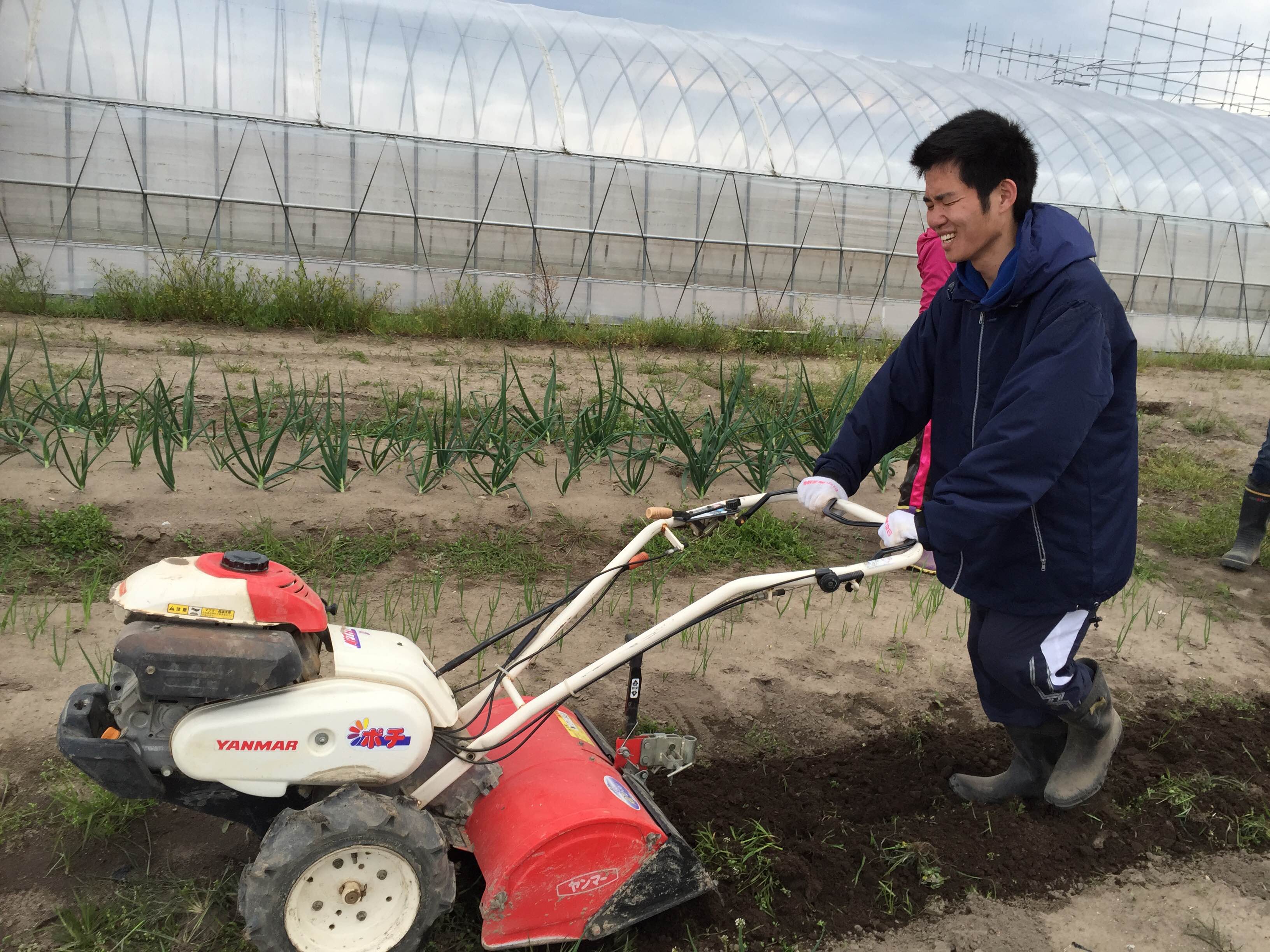 新入生も人生初の耕耘機に挑戦です!
