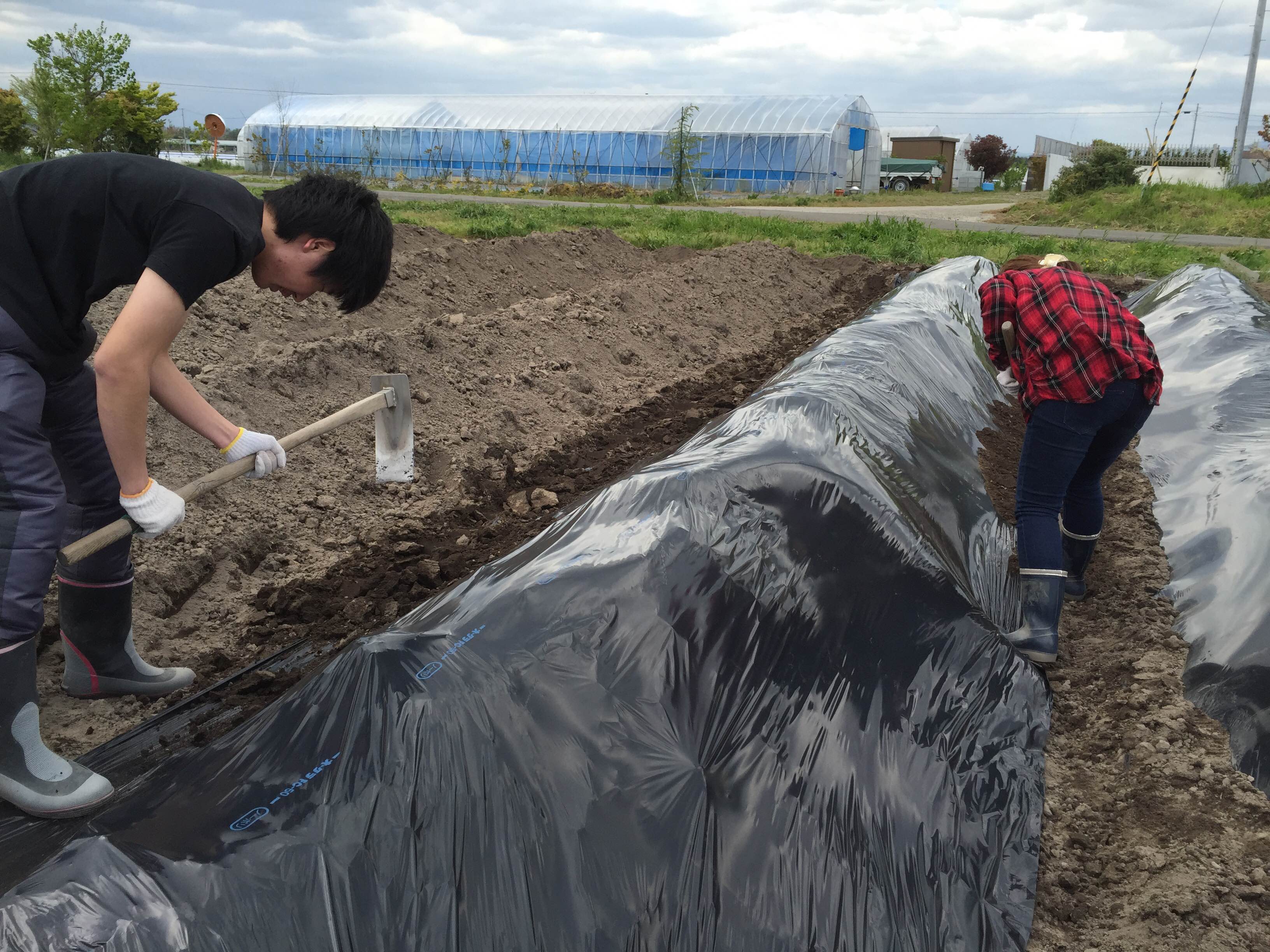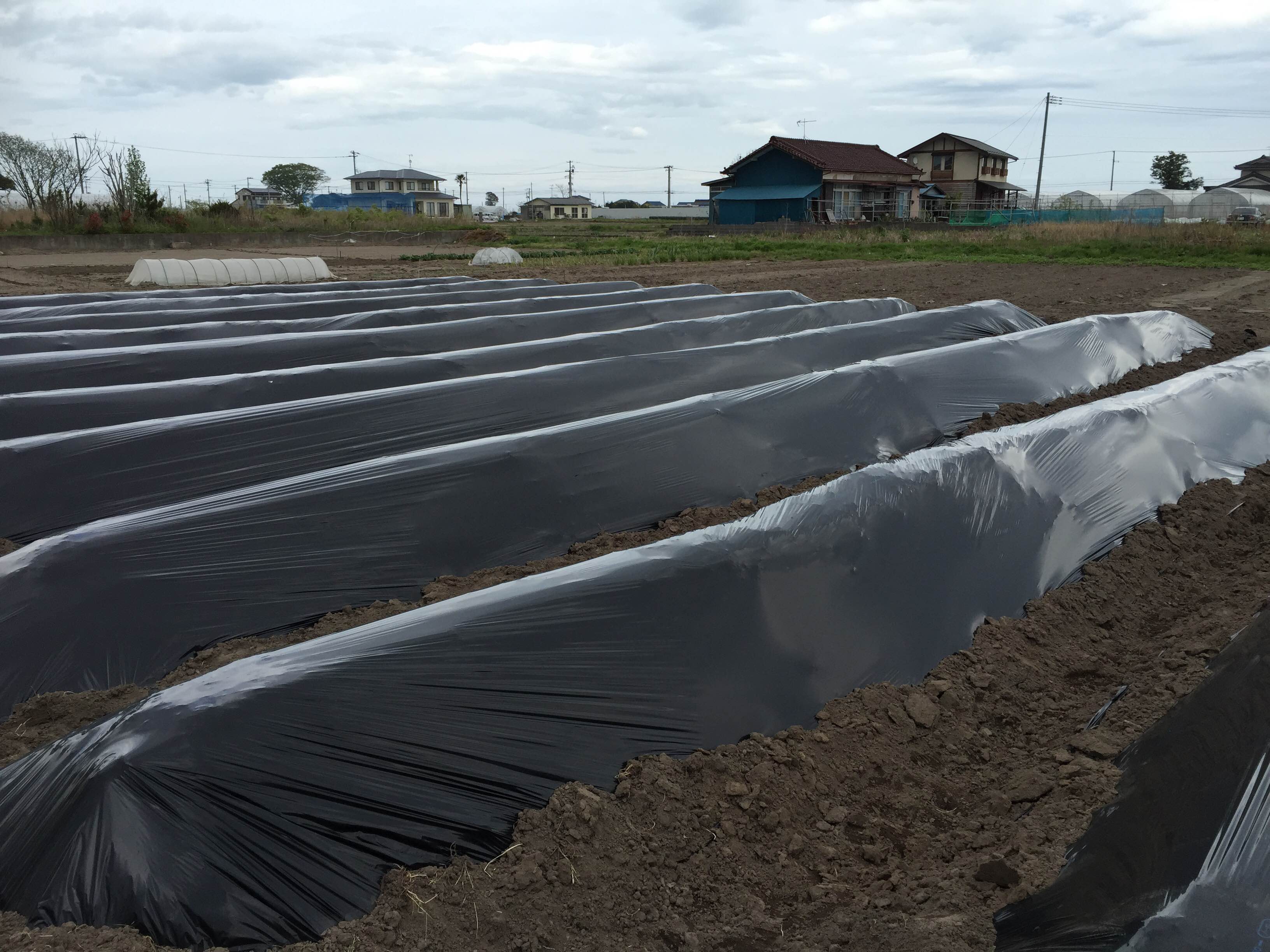 黒いビニール(マルチ)は、保温効果と雑草防止の役割があります