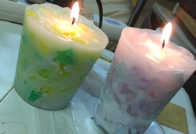 停電で暗くなってしまう気持ちを少しでも明るくしたいと思い、カラフルなキャンドルづくりを企画しております。