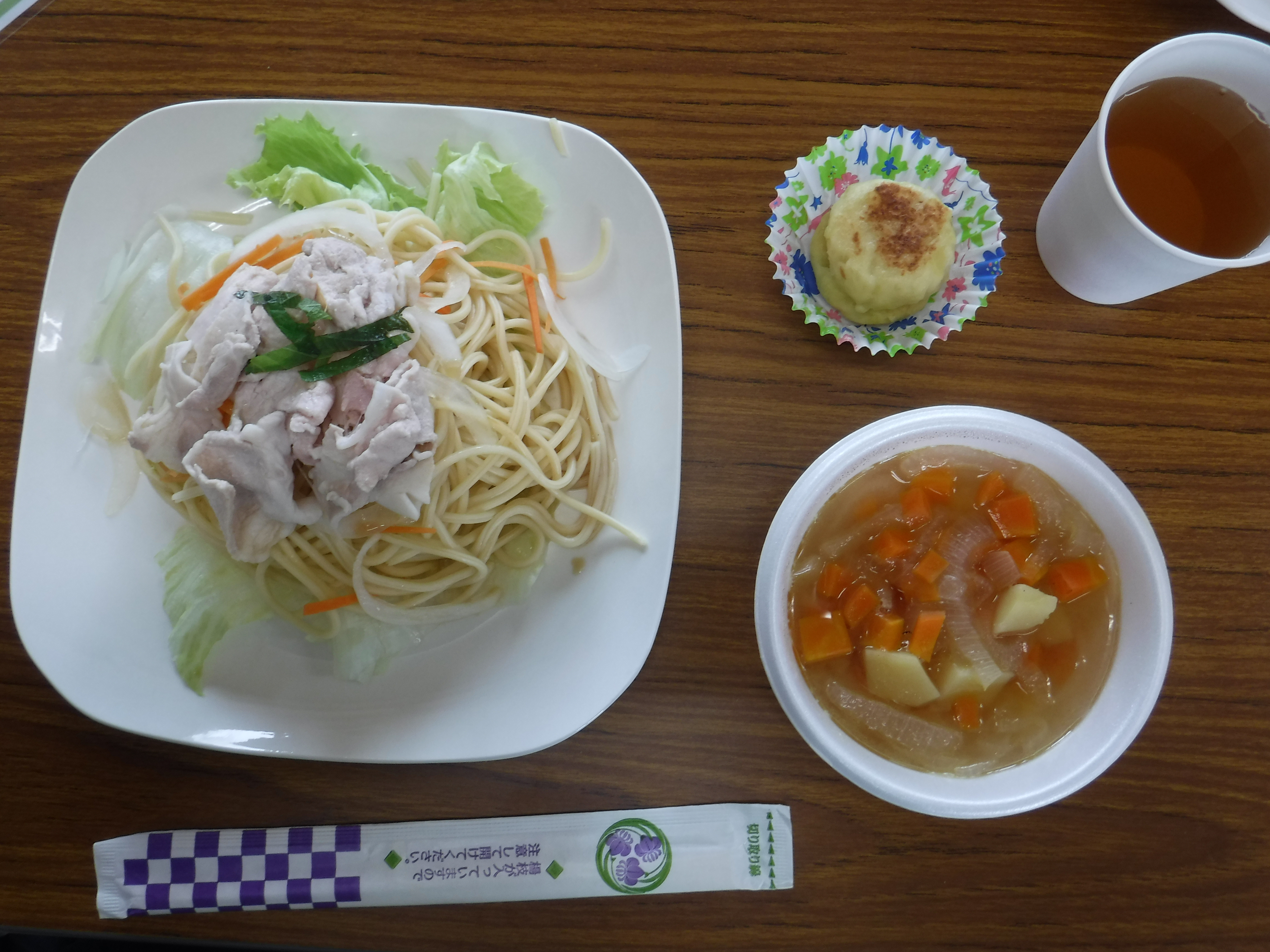 メニューは、冷製パスタ、いももち、コンソメスープでしたが、どの料理も若林区の野菜の本来の味を引き出したレシピでご用意いたしました。