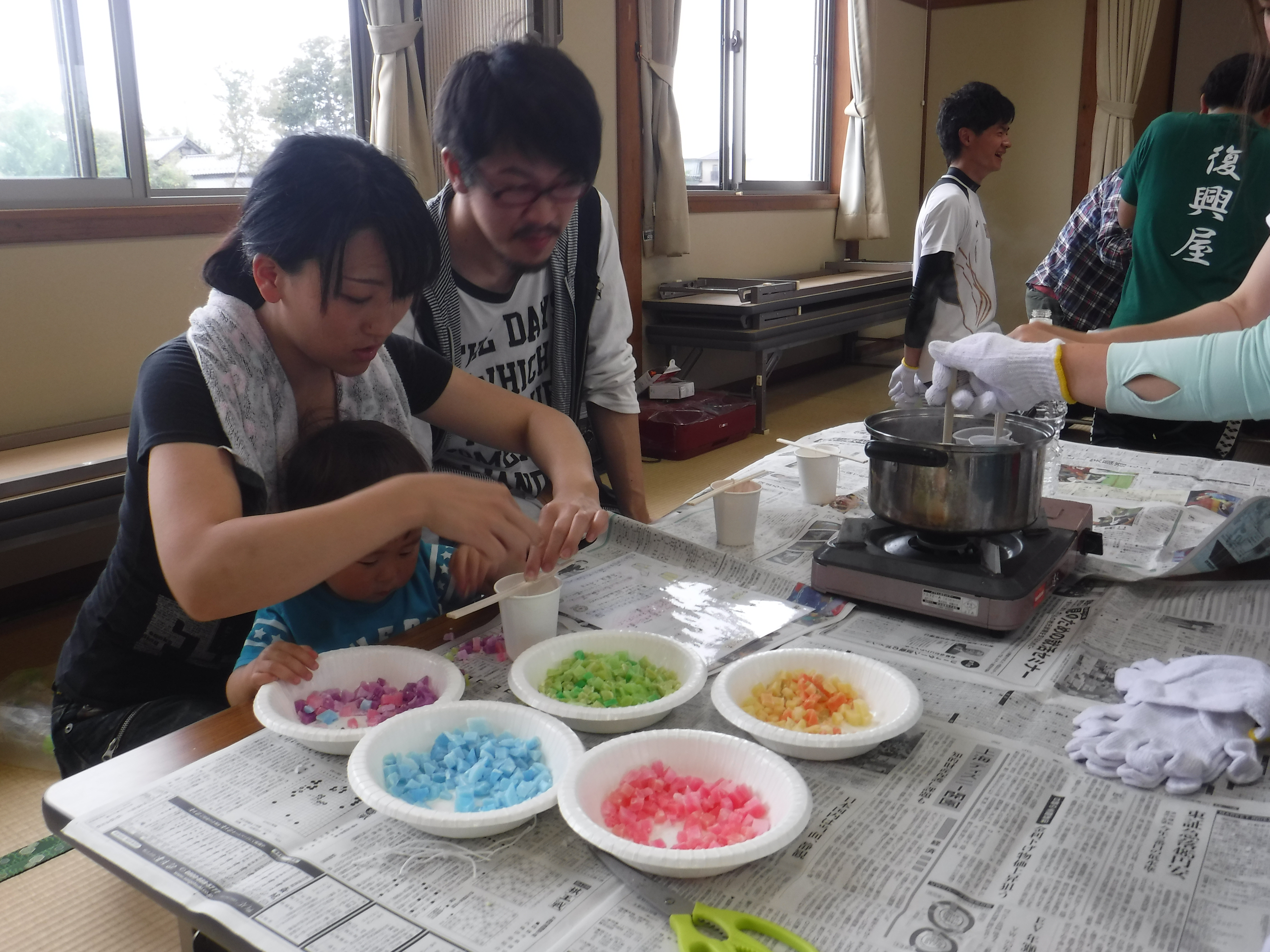 そして、溶かしたろうを紙コップに流し込んでいき、固まったら完成!