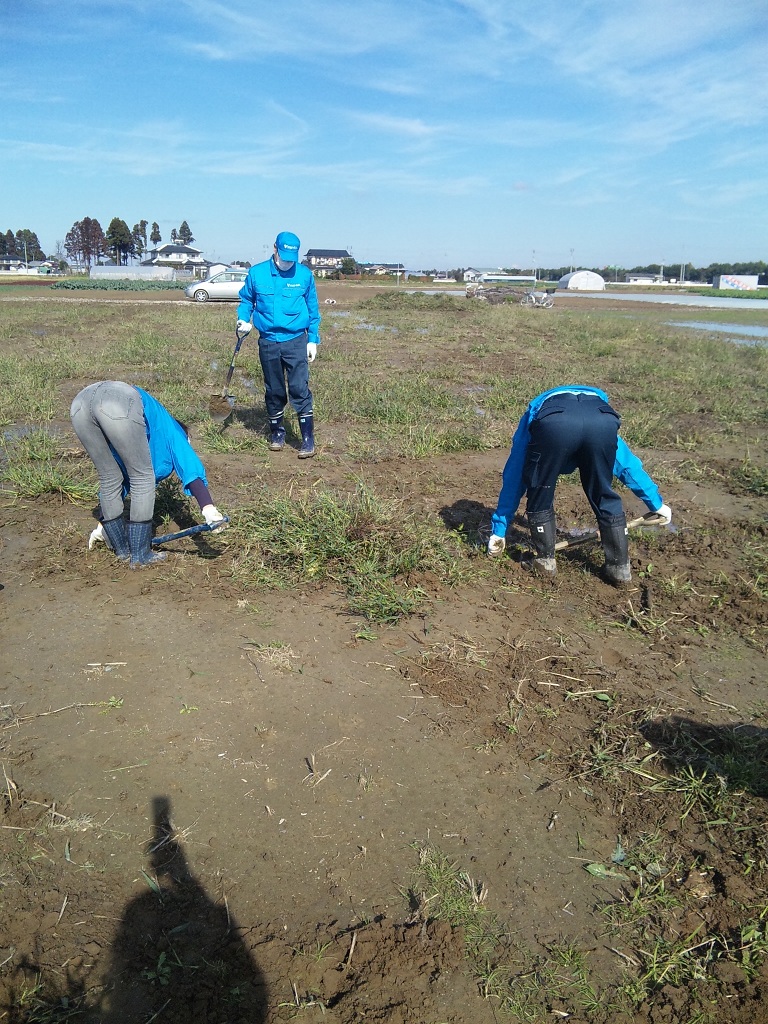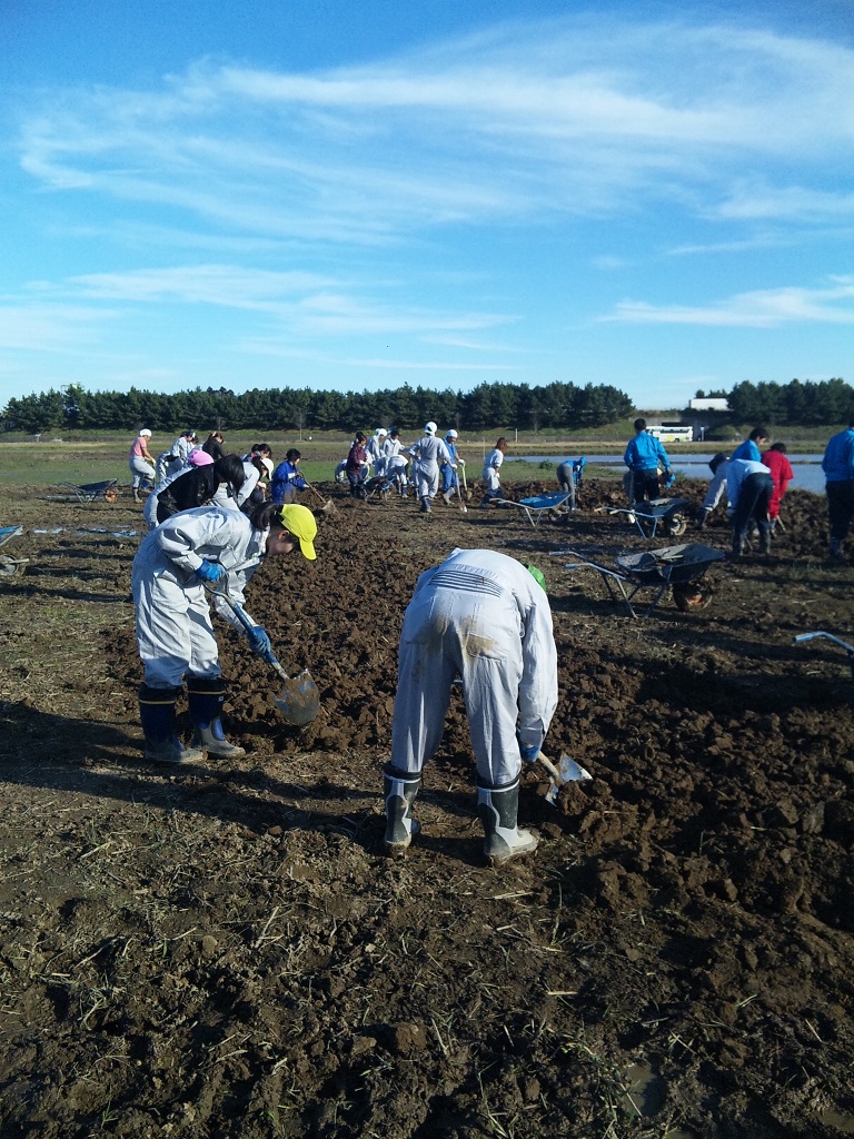 今日の参加者は泥まみれになりながらも、畑の雑草抜き、土起こしをやっていました。