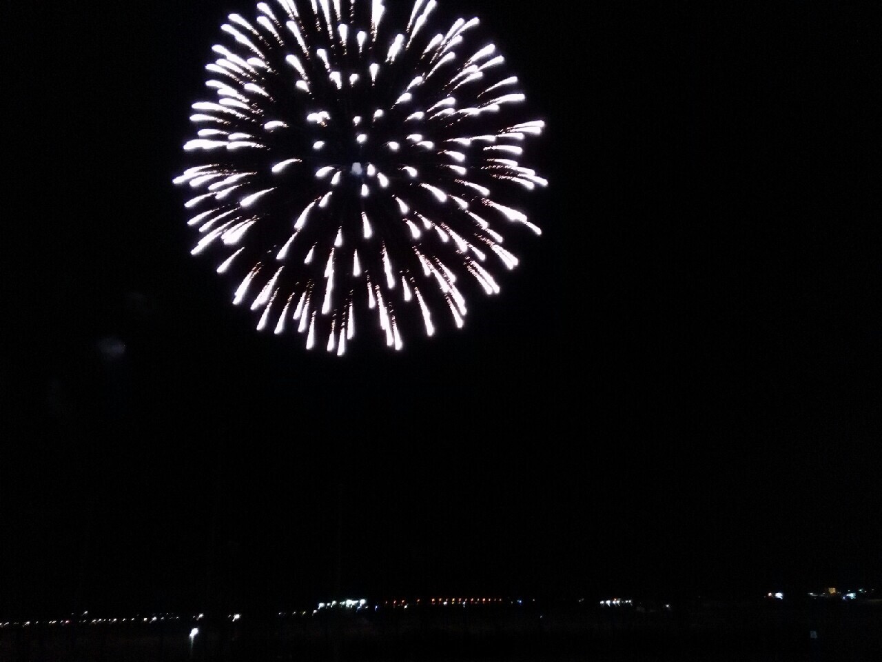 その後風も穏やかで静かな六郷の夜空に、きれいな白い花火が打ち上げられました。一発打ちあがるごとにその光と音とが、心に深く届き、会場は歓声と拍手に包まれました。