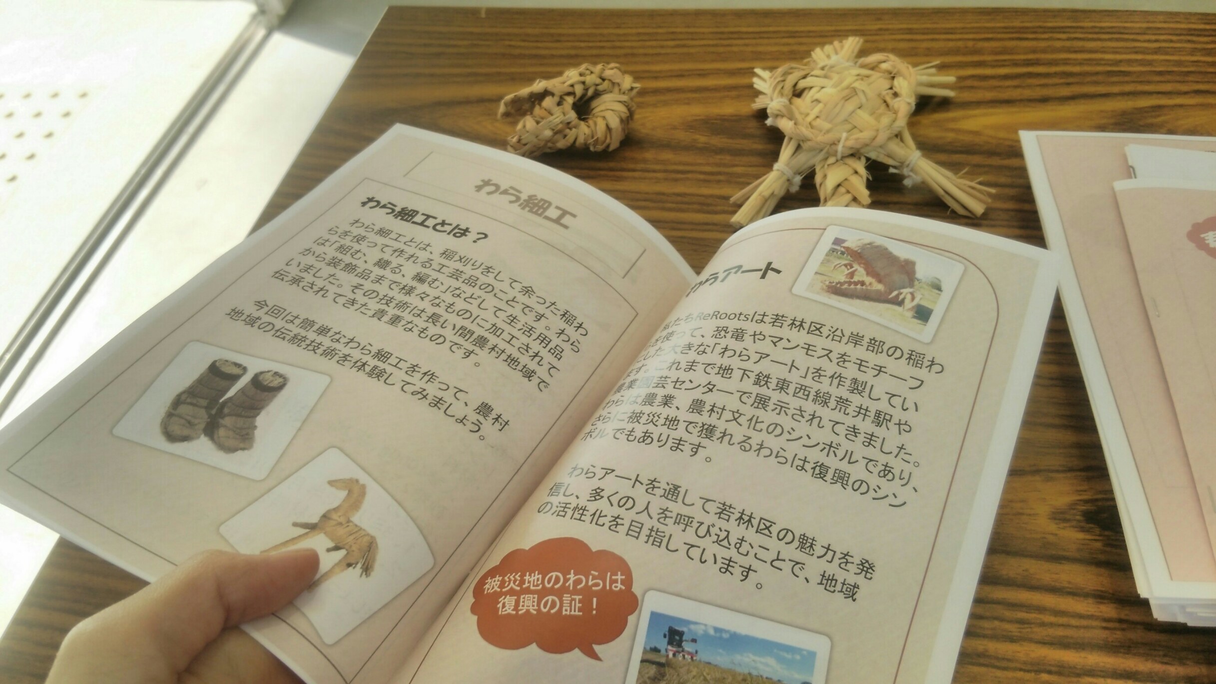わら細工では、子どもからお年寄りの方まで皆さんに楽しんでいただくことが出来ました。年配の方の中には、「わら細工を通して、わらが復興のシンボルであることを子どもたちにも感じて欲しい」とおっしゃっている方もいらっしゃいました。自分たちも、しおりを通してわらが復興の象徴であることを知ってもらえるように工夫しました。