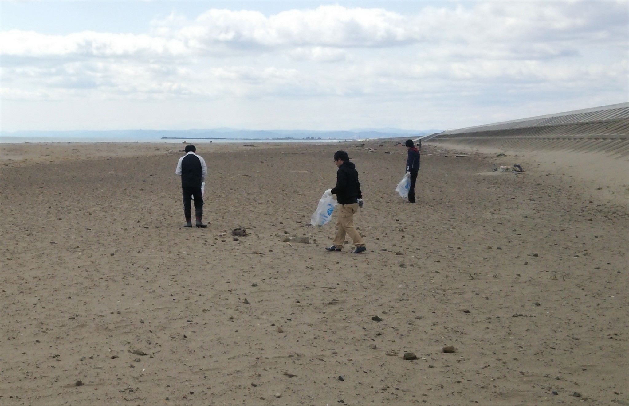 今年は、「荒浜再生を願う会」の庄子さんにご協力いただき、深沼海水浴場となっている砂浜を清掃しました。