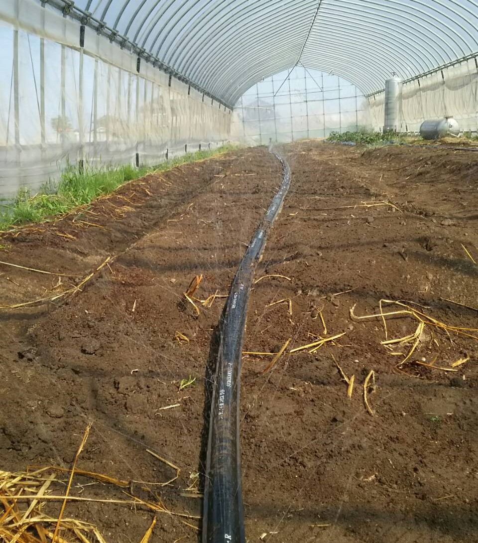 最後に、この写真は灌水設備の写真です。今日接続が終わって無事通水することが出来ました。