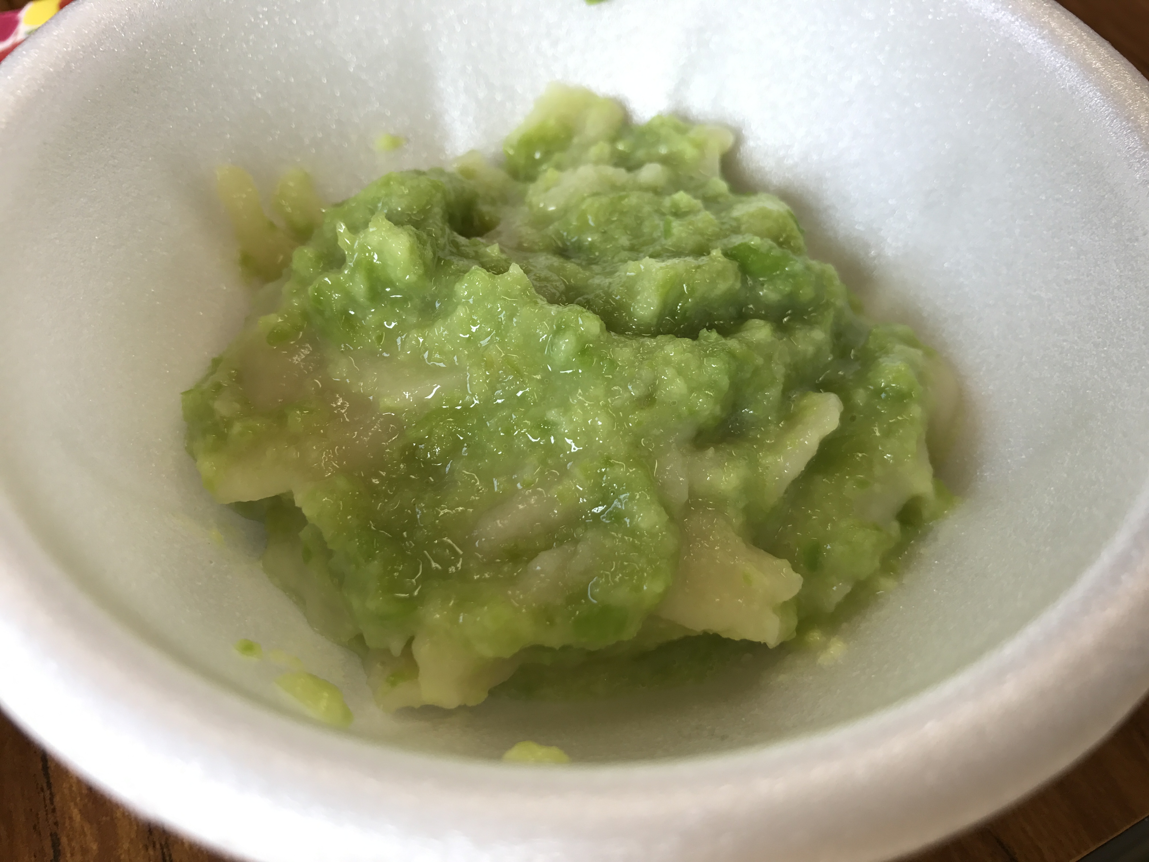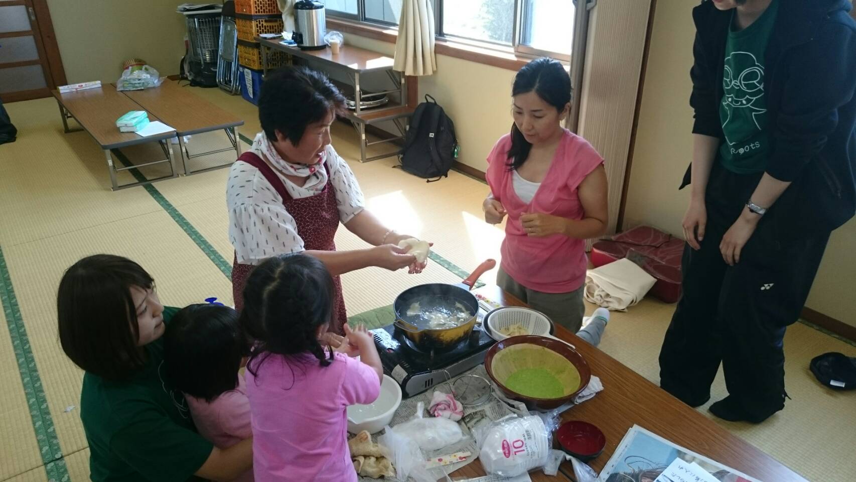 午後には、「ずんだばっと」を皆で作りました。地域でよく食べられる、「ずんだ」と「はっと」をあわせて食べてみよう、という企画でした。試作の時はずんだとはっとがうまくマッチしていないようでしたが、ずんだに水を少し加えることで、うまくマッチさせることができました。