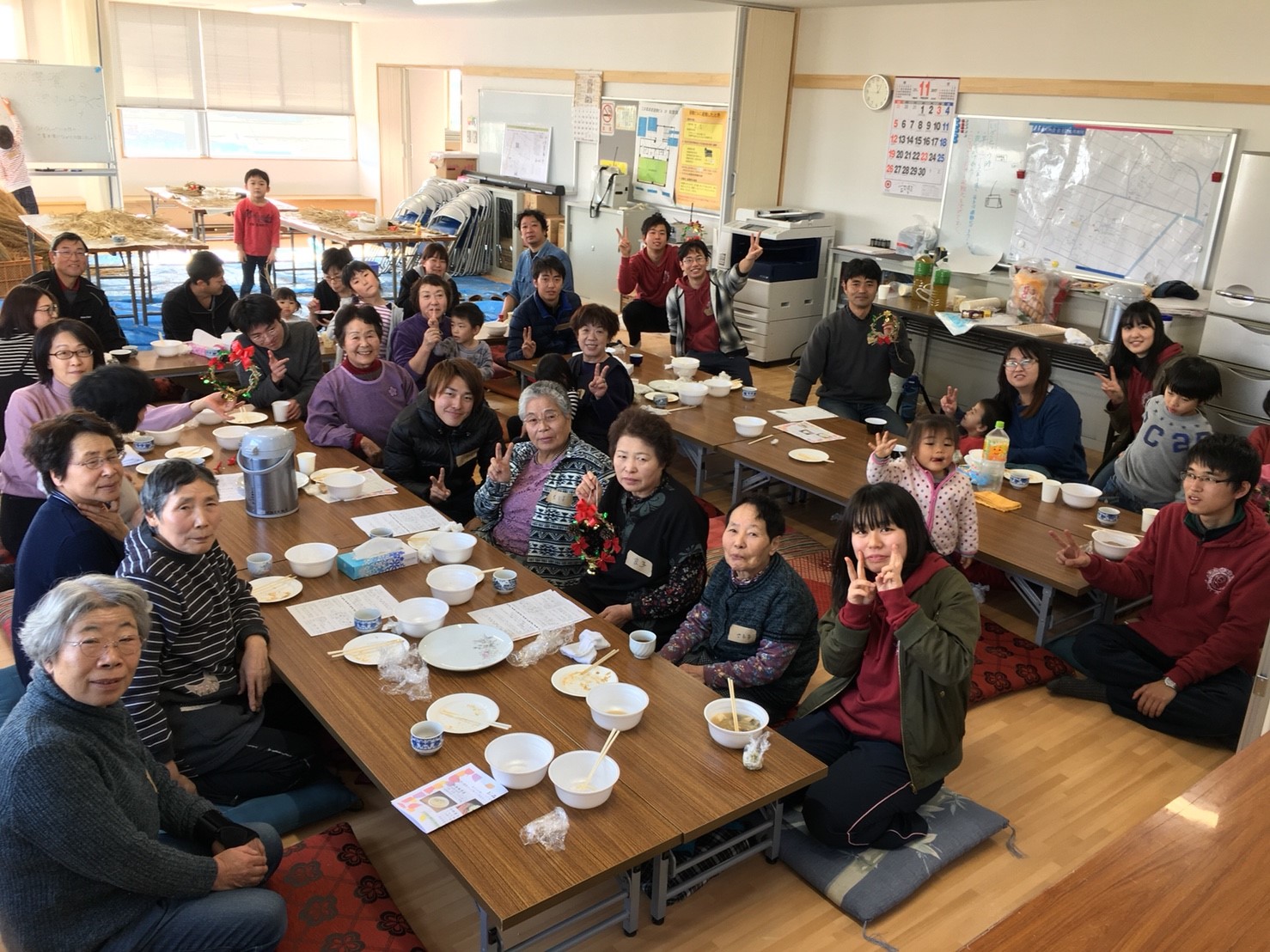 紅葉も散り、すっかり冬となってしまいました。こんにちは、農業チーム7期生のサイフロです。先日、三本塚の避難タワーで行われたわら・芋煮の共同企画の報告をします。
