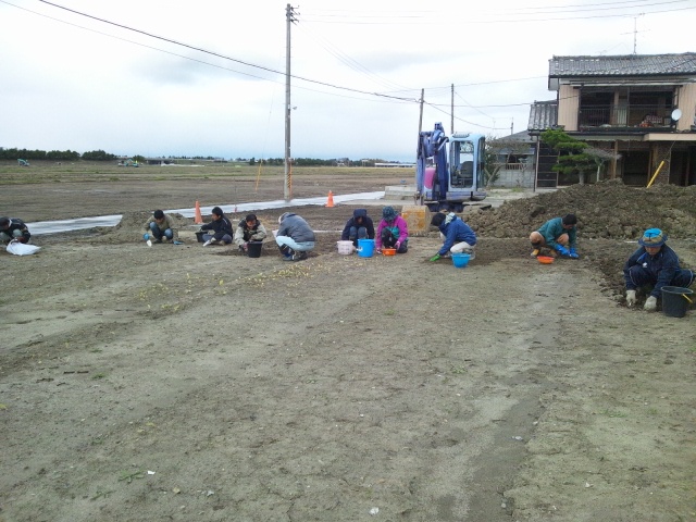 この畑は、ビニールハウスが立っていたところで、ガレキ撤去が終わったら、土盛りしてまたビニールハウスを立てるそうです。