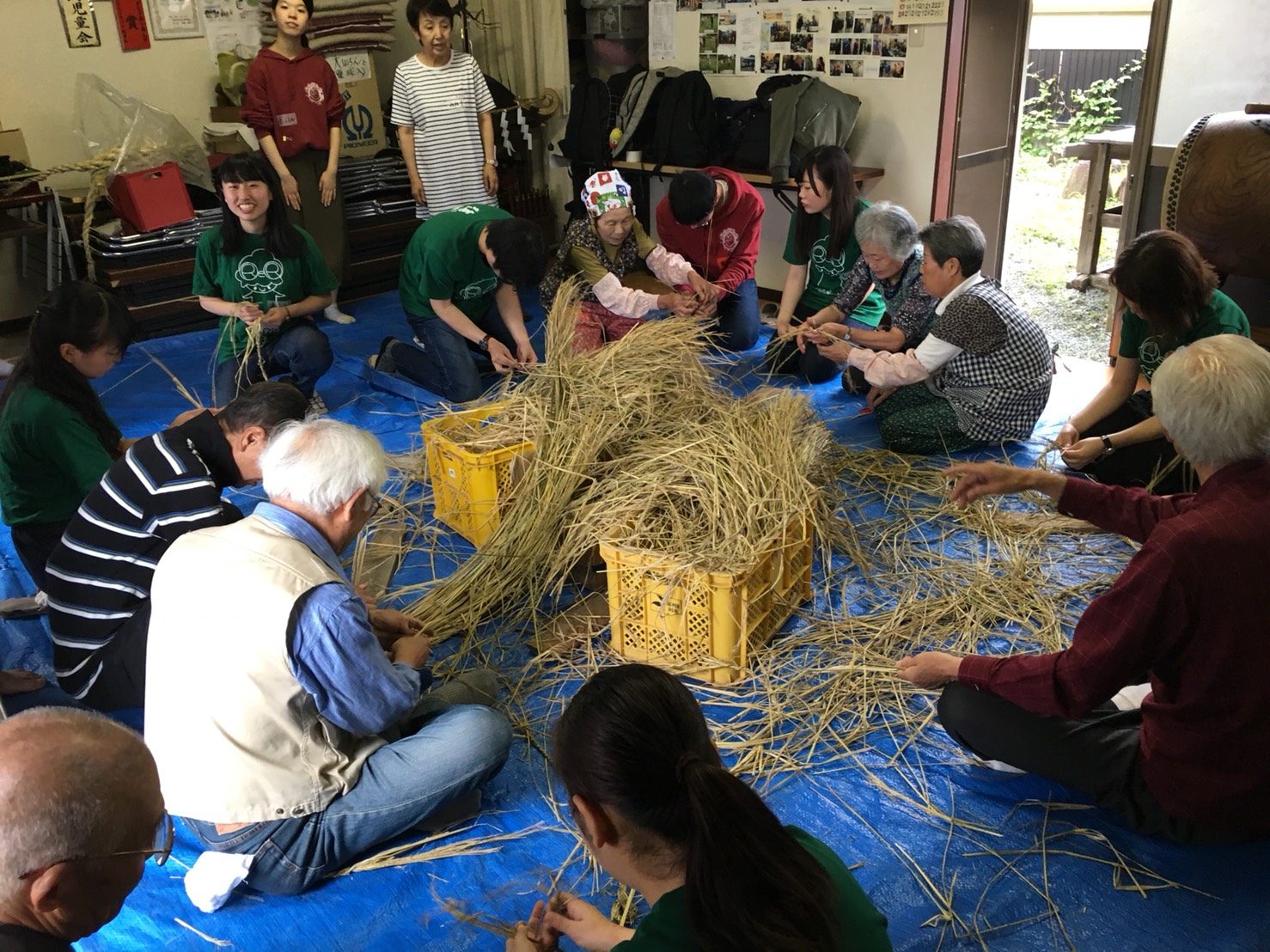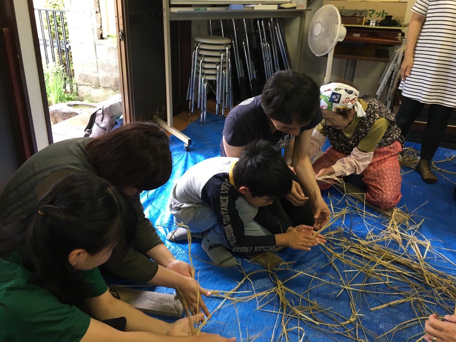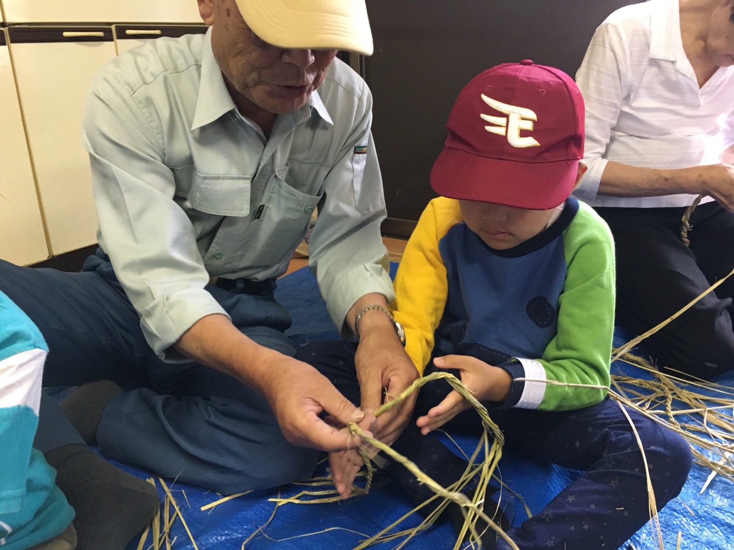 年配の方々が小学生の子供たちにわらないを教えている姿は、わらの農村文化が世代を超えて繋がっていく素晴らしいものでした!