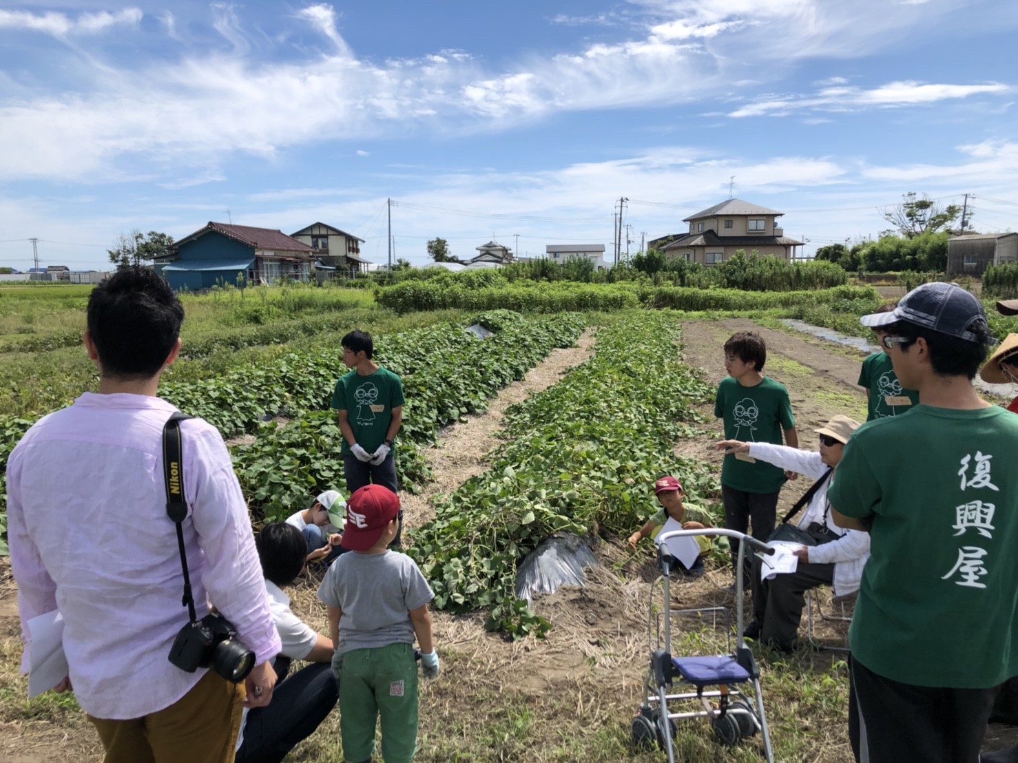 その前に、おいもプロジェクトとは何かを少しだけ説明しておくと、おいもプロジェクトとは、震災で被災した若林区に農業体験などを通して、多くの人に足を運んでもらい若林区の魅力や農業の楽しみを知ってもらおうという企画です。おいもプロジェクト自体は三つの企画からなっていて、サツマイモの苗植え・蔓返し(つるかえし)・収穫を行っています。毎年たくさんの方々にお越しいただいてます。