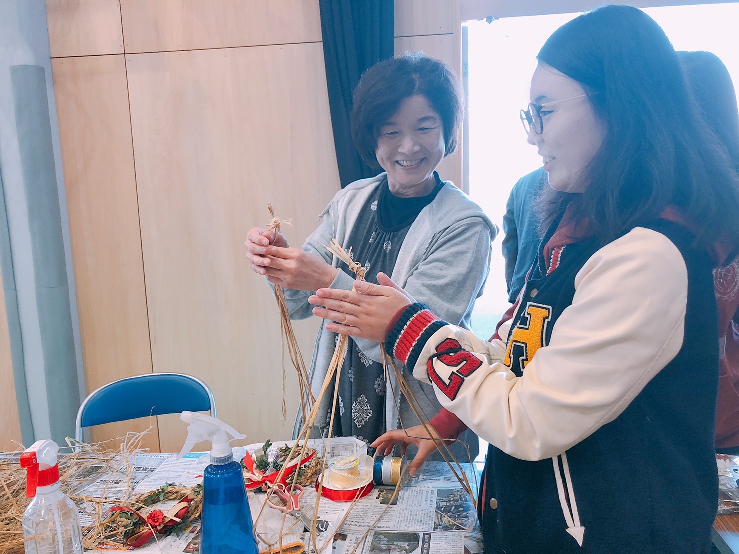 今年度ReRootsは「クリスマスリースづくり」ということで、わらをなってリース状にしたものに装飾をつける企画を行いました。反響もよく一回やってからまた作りたいといってくださるお客さんもいらっしゃいました。でもやっぱり子供のころからなわないをやってきた地域の方にはなわをなう早さもその精巧さも全然かないません笑。すごいなぁ。