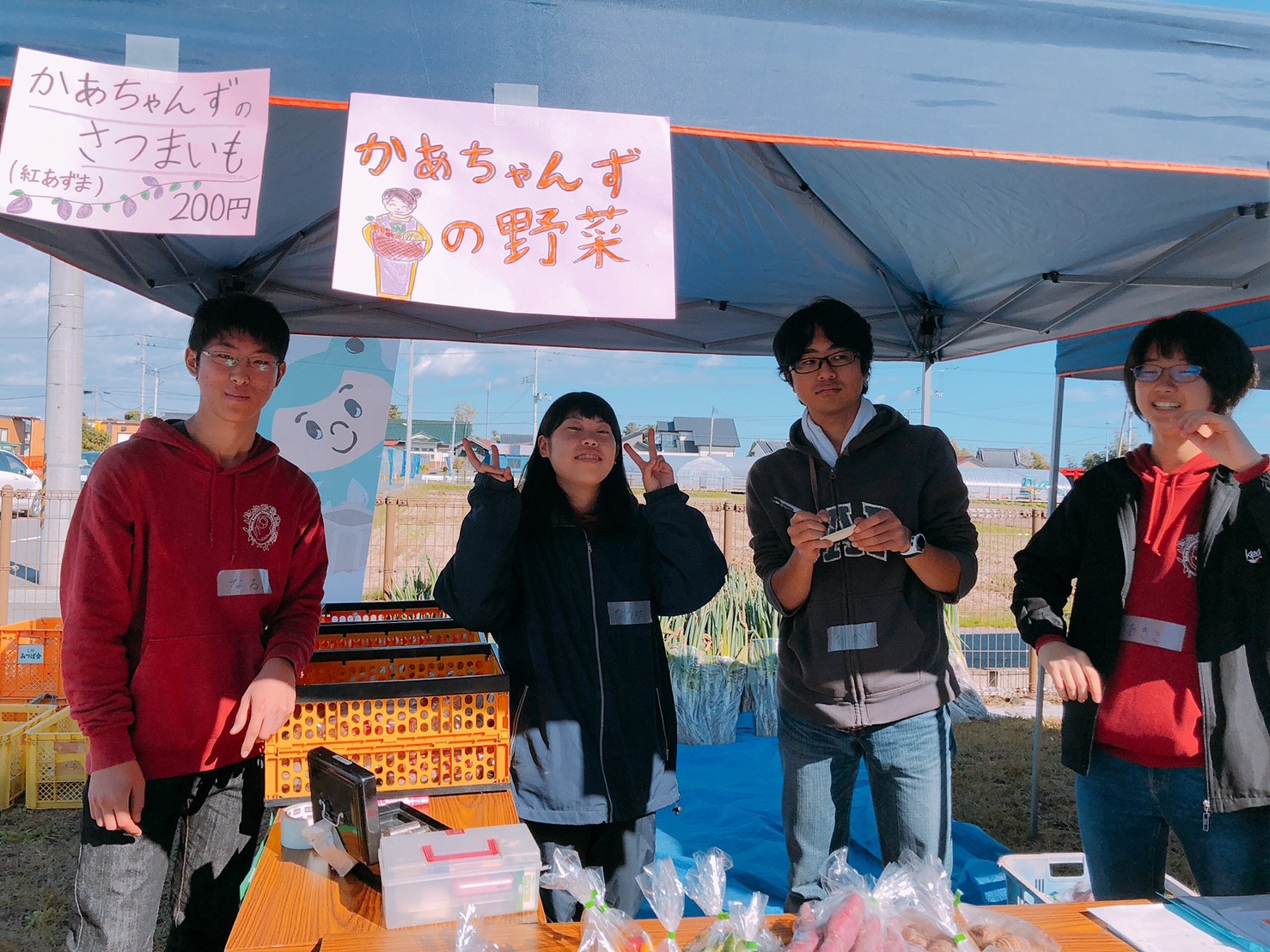 産直では井土ネギ、かあちゃんずの野菜、ReRootsのさつまいもの販売を行いました。このさつまいもは今年10月14日においもプロジェクトで収穫したさつまいもたちです。こちらも多くのお客さんにお買い上げいただいてうれしかったです。