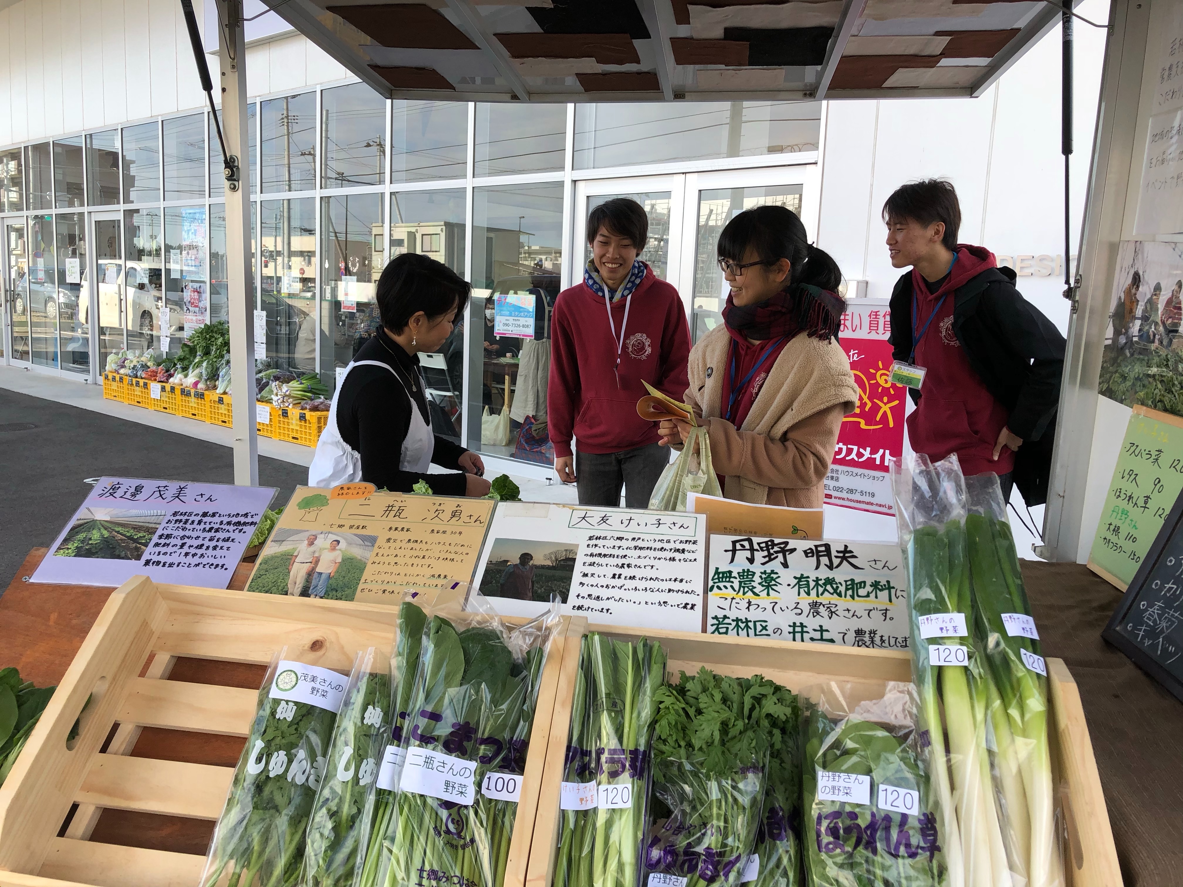 出店者さんの中には、若林区の野菜をおいしい!いつも楽しみにしているよ!などの声をいただき、若林区の野菜の魅力を伝えることができたかなと思います。
