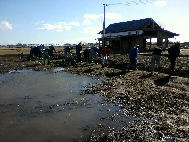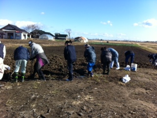 凄い風でしたね。からっ風は群馬の専売特許のはずなのに、仙台もこんなに吹くのかと驚きました。予定より早く終わった?のは、農家の3人組(合計209歳)の力が大きかったかなと思います。”あのくらいの作業は何でもねえよ。でも、この頃は機械使うから、スコップは久しぶりだな”との感想でした。
