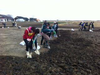 みなさん足でスコップをガシガシやってなんとか土を起こしています。
