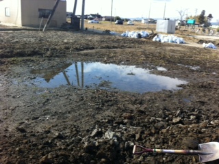 先週降った雨でできた水たまりがまだ残っています。