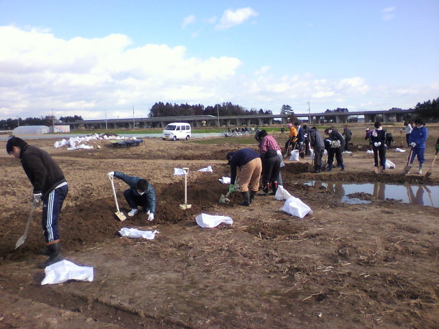 今日はもう一つの班でも、別の場所で畑の土興しとがれきの撤去をしていました。