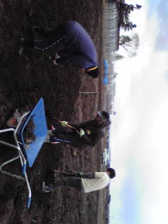 さて今日はおとといに引き続き、同じ畑の土おこしとガレキ拾いを行いました。