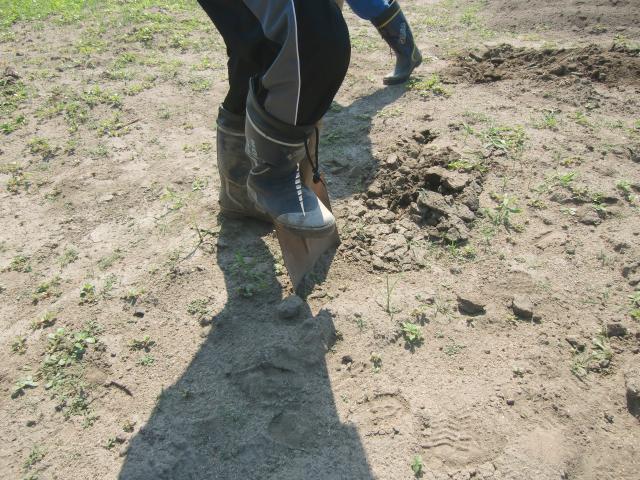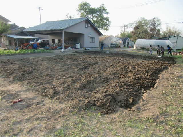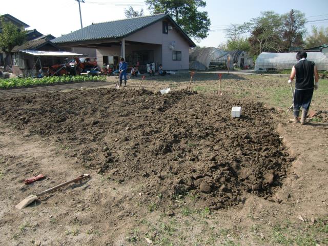 今日の作業では、シャベルなどで土を掘って埋まっているものを取り除きつつ、土を柔らかくできました。
