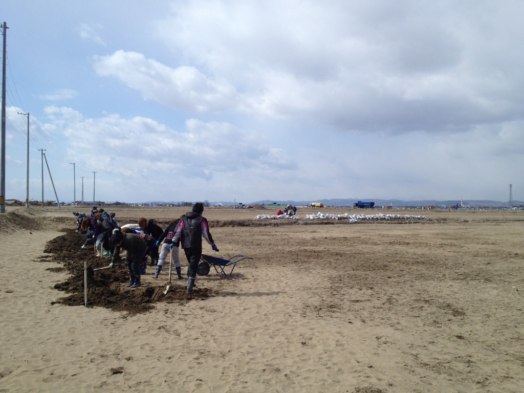 今日は荒浜で土おこしとガレキひろいを行いました。